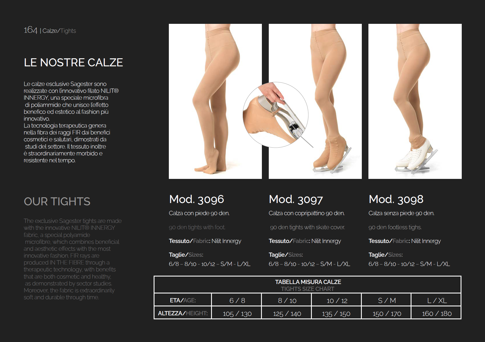 The exclusive Sagester tights are made with the innovative NILIT® INNERGY fabric, a special polyamide microfibre, which combines beneficial and aesthetic effects with the most innovative fashion. FIR rays are produced IN THE FIBRE by means of a therapeutic technology, with benefits that are both cosmetic and healthy, as demonstrated by sector studies. Moreover, the fabric is extraordinarily soft and durable through time.